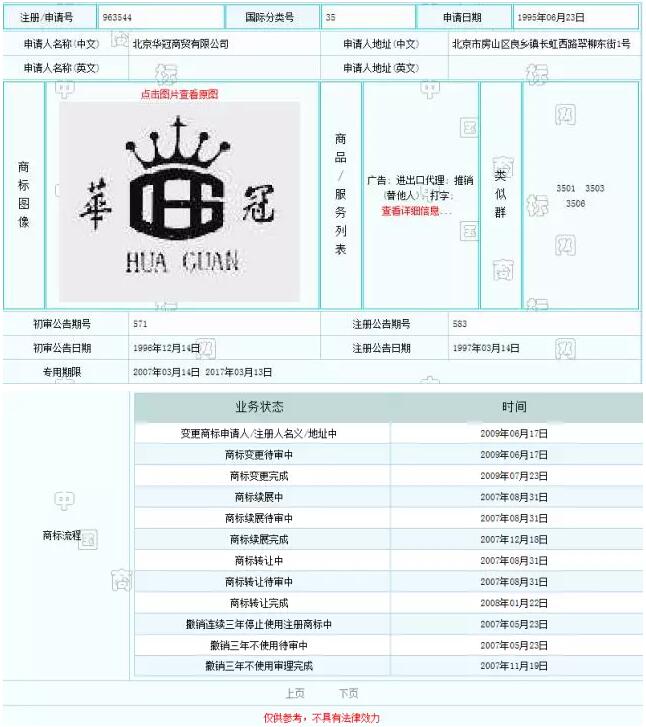 例如:“华冠”商标第35类广告销售,最初权利人不是北京市房山华冠商贸有限公司,另有其主,但其名下的“华冠超市”又急需有这类商标,怎么办?商标转让!有了这35类等这些核心商标权的保护,才助力“华冠超市”成为北京市房山区的商业龙头企业地位。